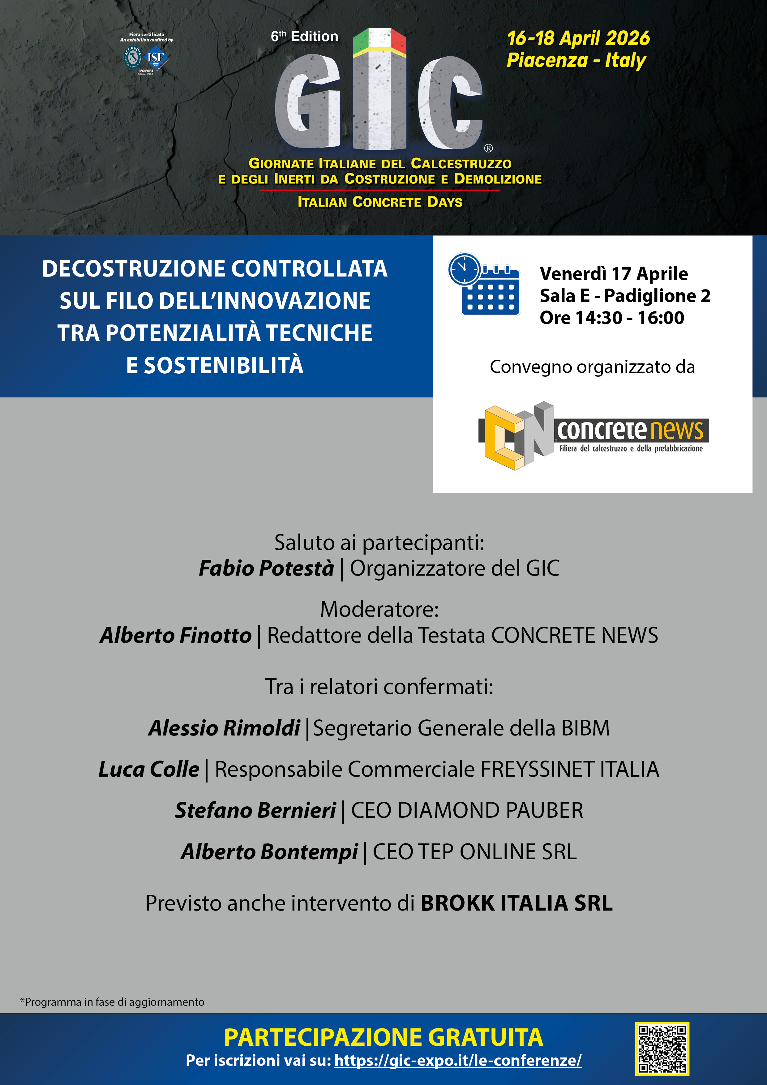 Previsto anche intervento di BROKK ITALIA SRL